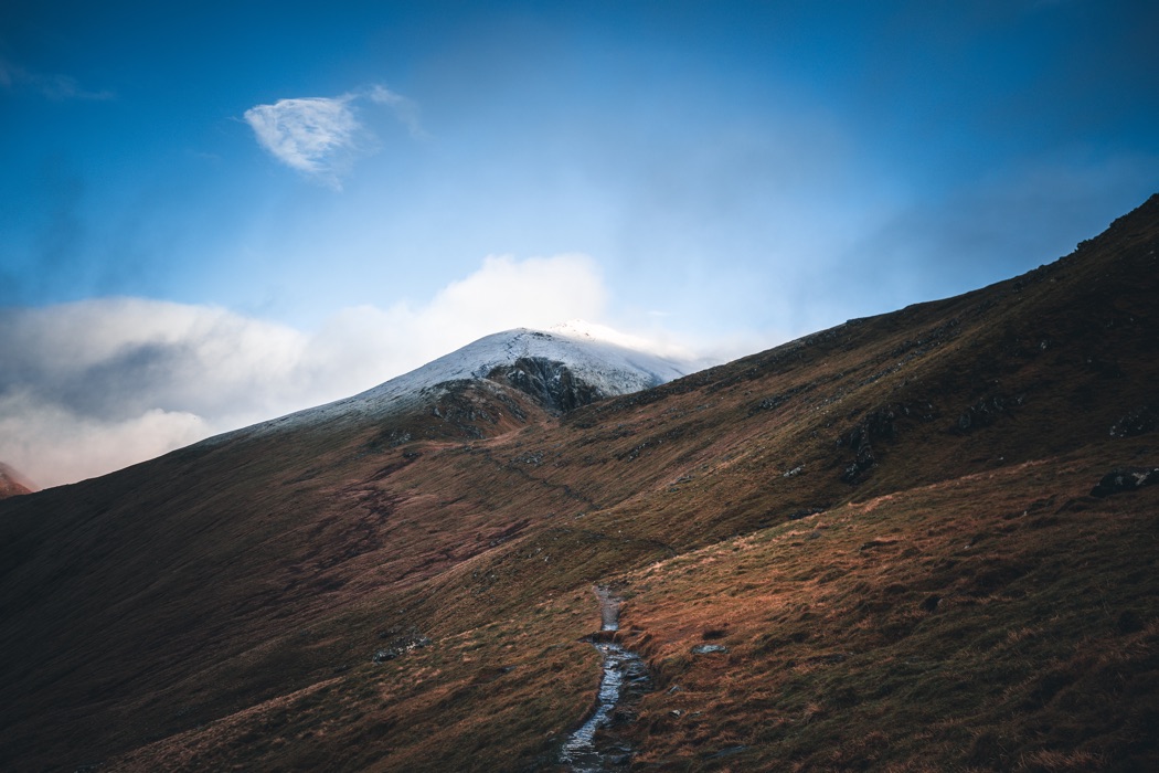 Glas Tulaichean lies just inside the Cairngorms National Park and – if you’re feeling a little weary by this stage – it makes for a relaxed ascent with fantastic views. This Munro is a Site of Special Scientific Interest (SSSI), protected for its upland flowering plants. Park in the Spittal of Glenshee and walk up to Dalmunzie Castle Hotel where an old railway line and then a clear Landrover track lead you through Glen Lochsie almost to the summit. Your only obstacles? A couple of river crossings – spare socks recommended!