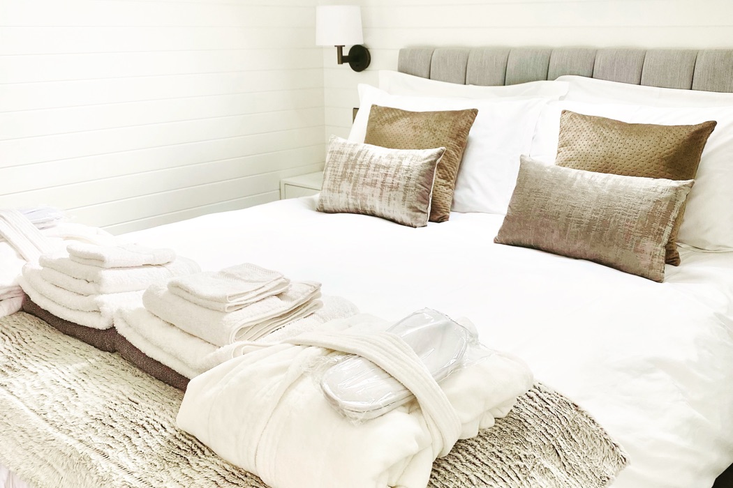 With two bespoke pods, sleeping up to10 guests. Spacious and light, with beautiful décor, fine linens, fluffy towels, bath robes and slippers.Both featuring fully equipped kitchen, including wine fridge and a bijou shower room.